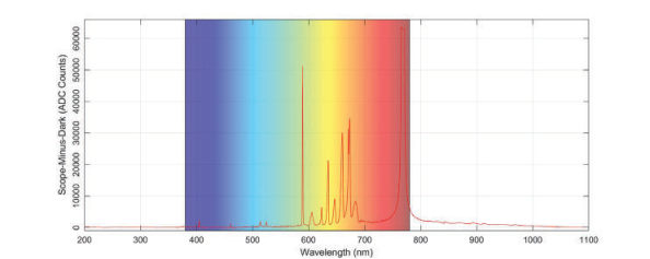 与激光诱导击穿光谱(LIBS)技术类似,点燃的烟花发出了光,此时利用光谱仪会检测到特定波长的峰,它们对应着特定的元素。
