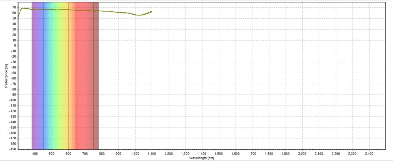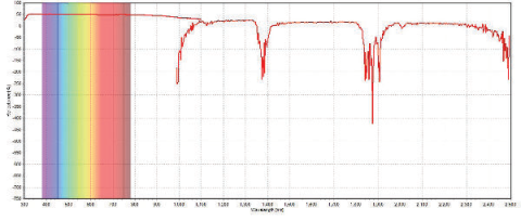 我们总共选择了5个测量样品点,其中3个测量点使用2款光谱仪测量,覆盖波长范围200-2500nm。另外2个测量点单独使用可见光谱仪NEXOS™测量,覆盖波长范围200-1100nm。