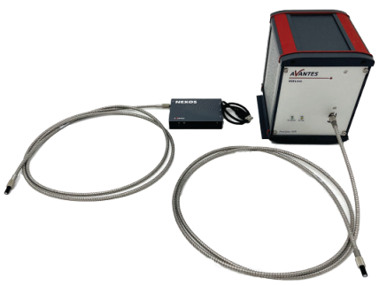 另一款为迷你型光谱仪AvaSpec-NXS2048CL,通称为NEXOS™。它配备2048像素CMOS探测器,覆盖波长范围200-1100nm。实验使用的其他附件包括两根600μm芯径光纤和两个余弦校正器。