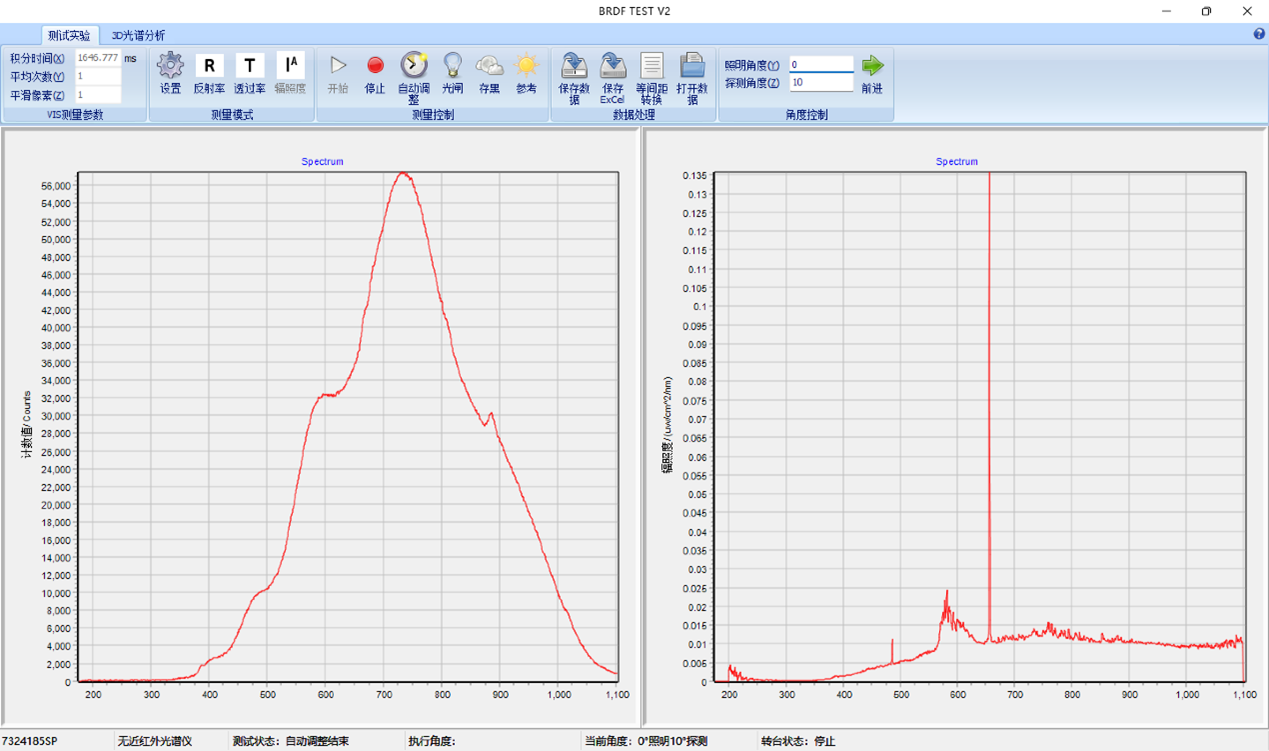 根据待测样品表面的不同反射类型,配合特定参考板,测试参考光谱强度与反射光谱强度,计算得到相对反射率数据。